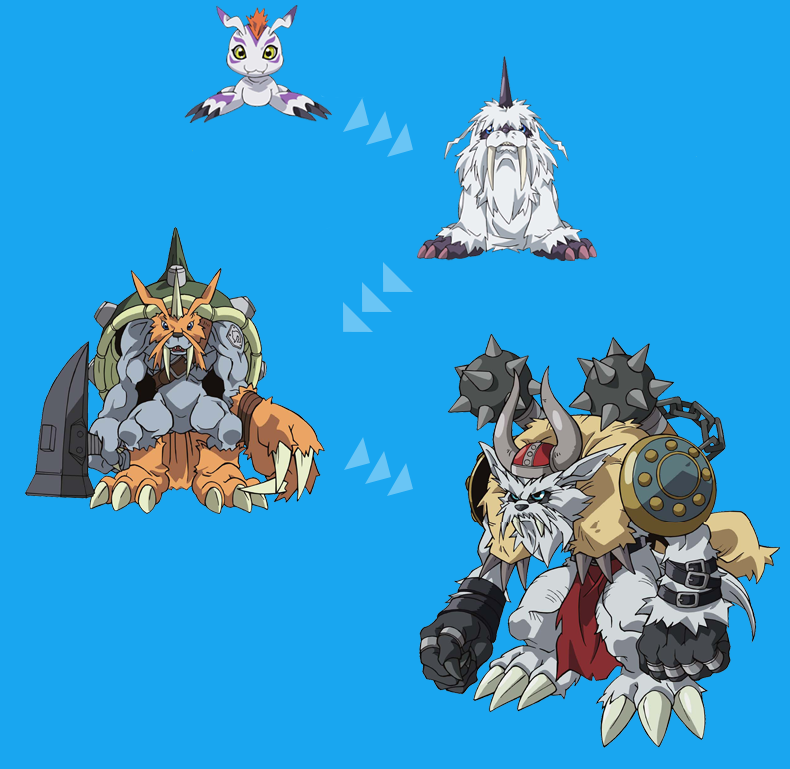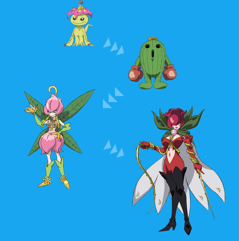 Como podemos ver, apenas as evoluções que apareceram até agora foram colocadas nas tabelas. Ainda faltam o nível mega da Tailmon e Meicoomon, que deverão aparecer no próximo capítulo.