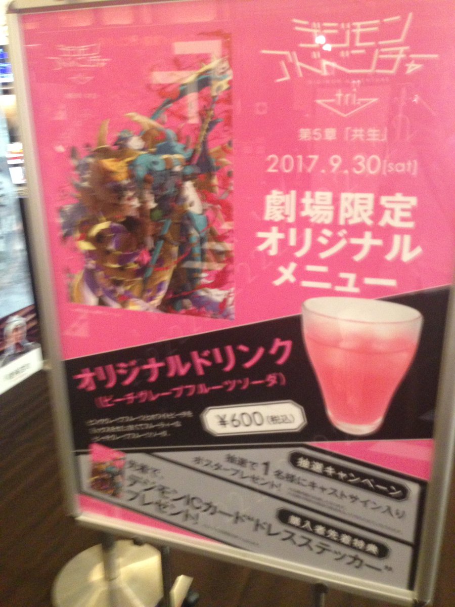 Na snack bar do cinema, é possível comprar essa bebida temática de "Digimon Adventure tri", que vem com um pequeno cartão com a arte do pôster.