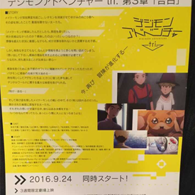 - O primeiro anunciando o tema de encerramento do novo OVA de Digimon Adventure tri., que se chamará "Boku ni totte", e será interpretado pela Knife of Days, a banda do Matt no anime.- O segundo foi o novo trailer de Digimon Adventure tri. (Confissão), que você pode assistir clicando aqui.- E o terceiro foi um comercial dos Appmon, anunciando o lançamento dos produtos para o dia 8 de outubro.